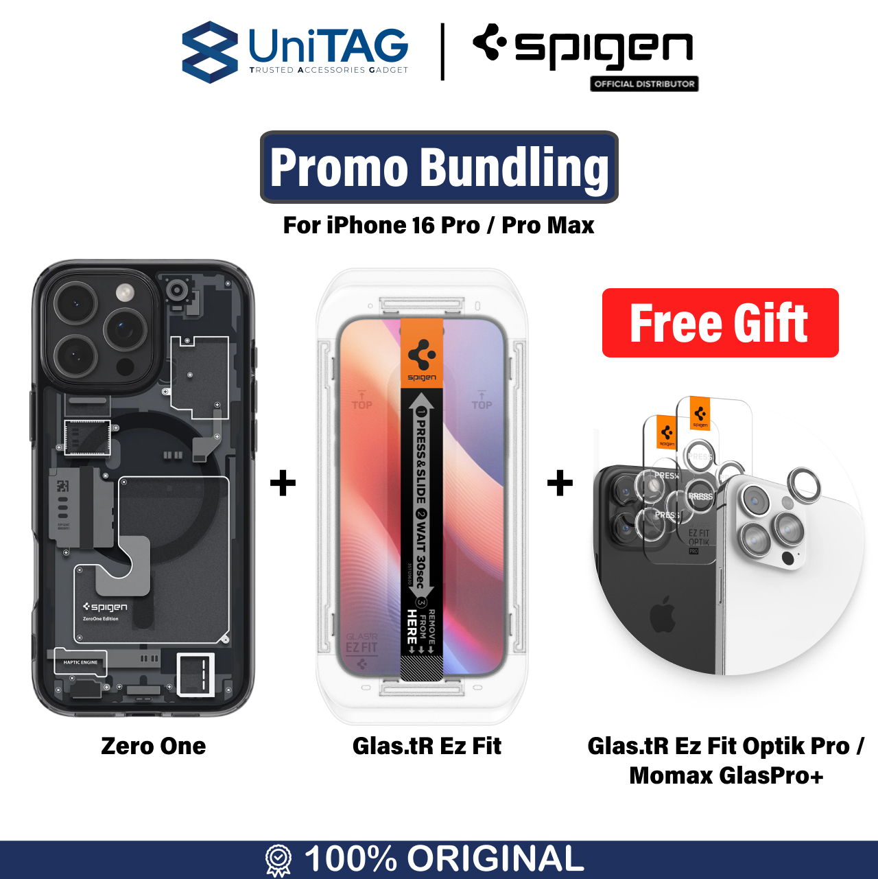 Bundling Spigen Case iPhone 16 Pro Max Ultra Hybrid Zero One Casing + Tempered Glas tR EZ Clear + HADIAH GRATIS