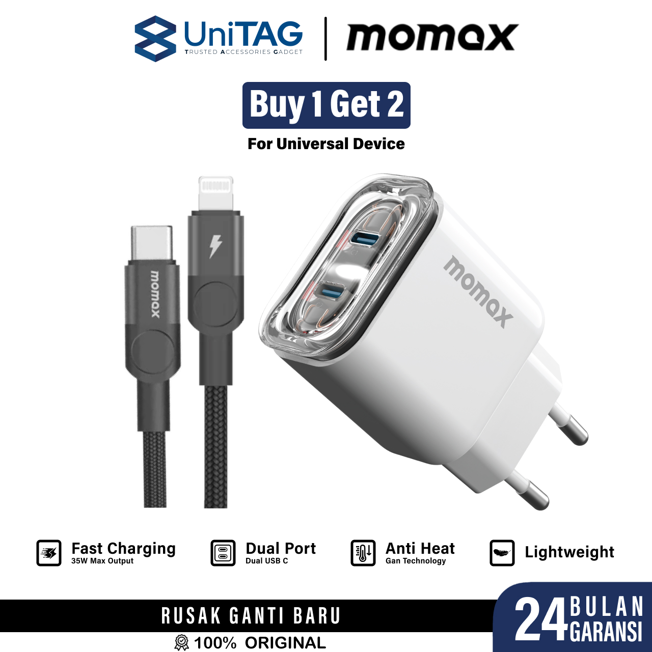 ![[BUY 1 GET 2] Momax Charger Adaptor 35W GaN Fast Charging USB C 2 Port + Kabel Charger iPhone Samsung](https://new.unitagstore.com/wp-content/uploads/2025/08/UniTAG-C-L-Mag-Link-300x300.jpg)