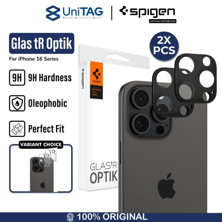 Camera Lens Protector iPhone 16 Series Spigen Glas.tR Optik merupakan pelindung kamera yang berfungsi melindungi modul kamera tanpa mengurangi kualitas foto.