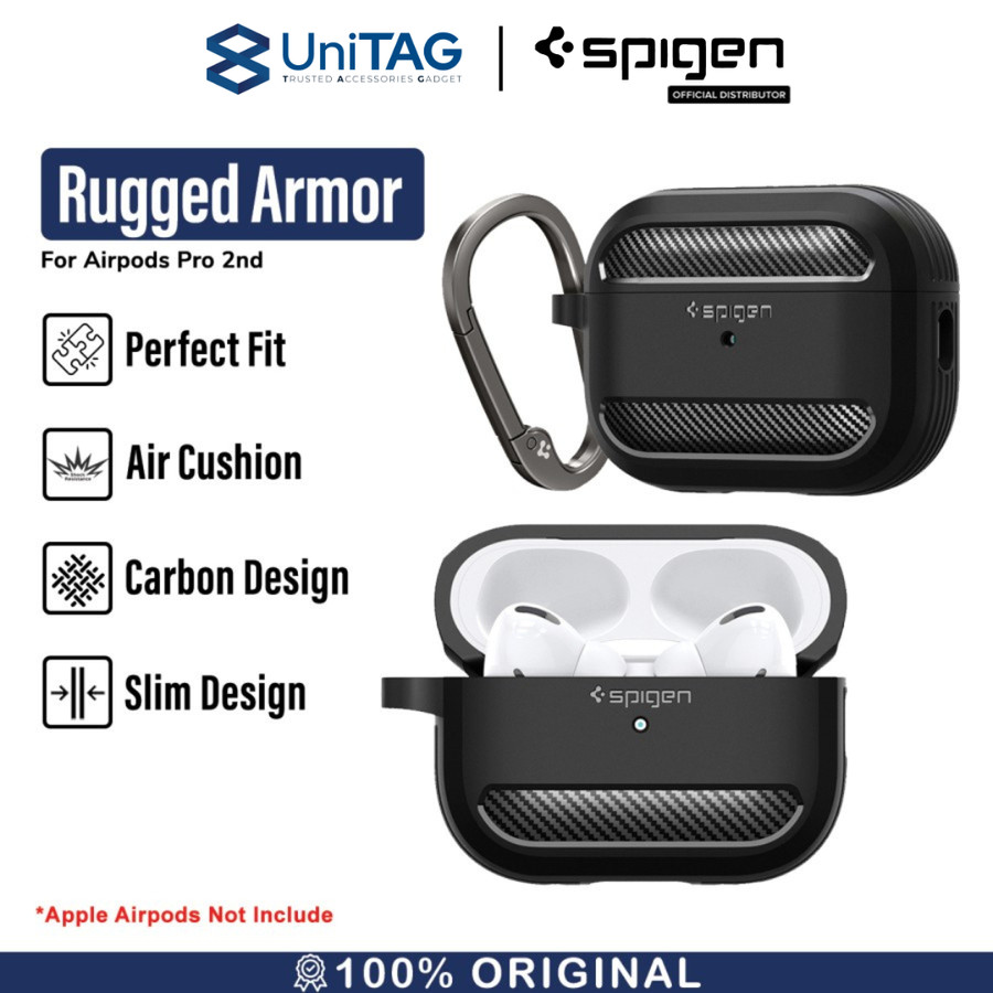 Case Airpods Pro 2 Spigen Rugged Armor Shockproof Slim Carbon Casing