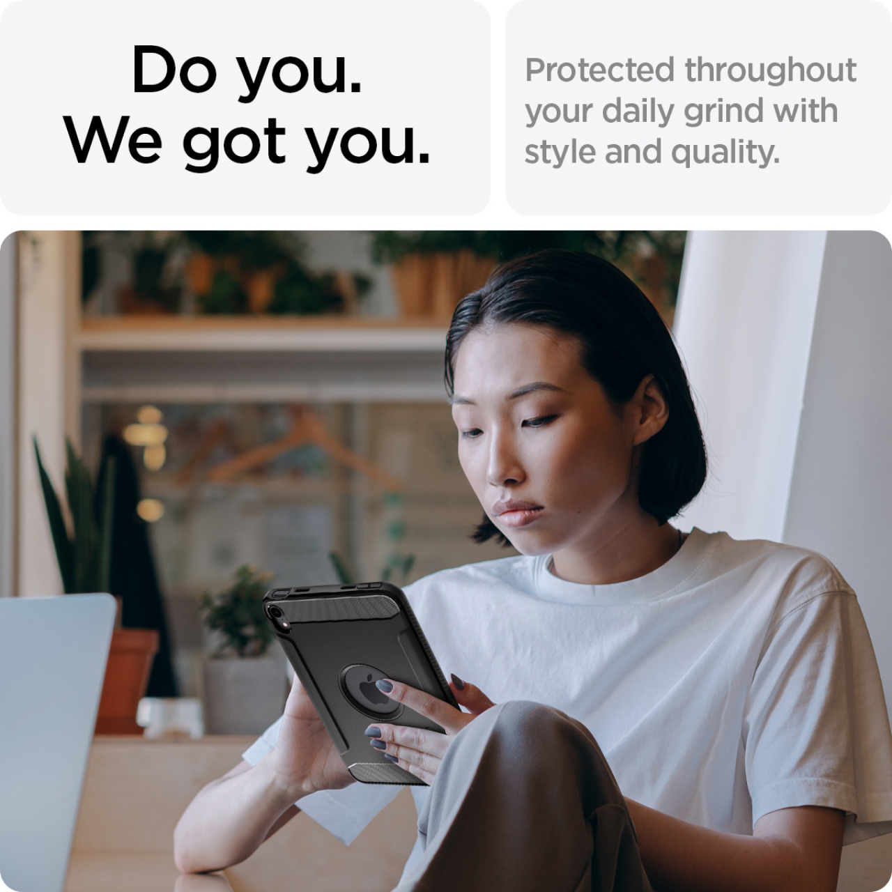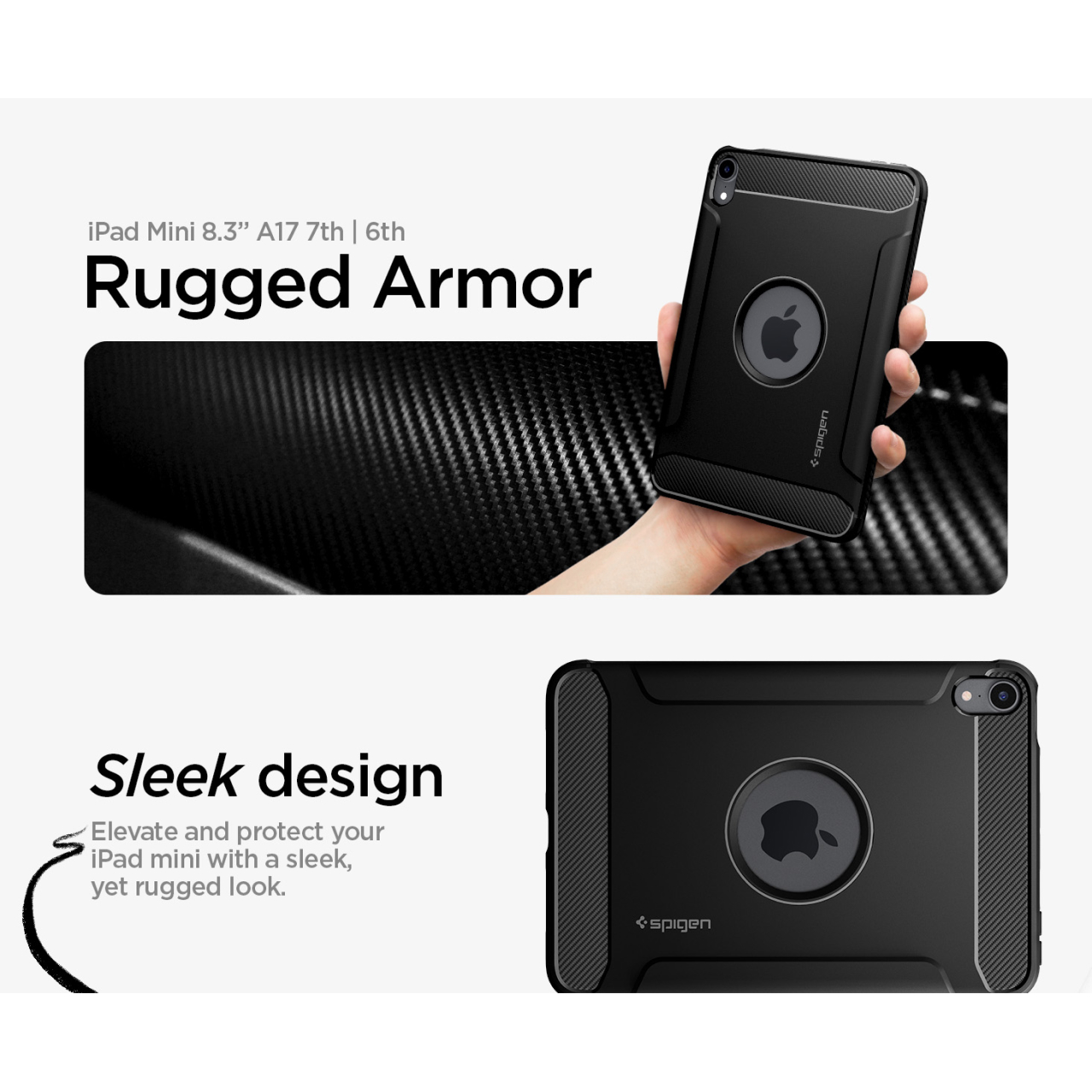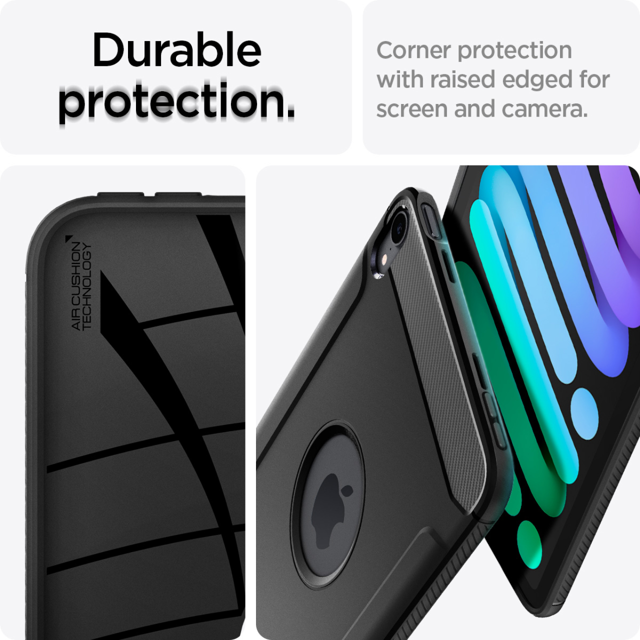 Case iPad Mini 7 (2024) / iPad Mini 6 8.3 (2021) Spigen Rugged Armor Merupakan case yang terbuat dari bahan Full TPU (Softcase) yang premium sehingga nyaman digenggam serta mampu menyerap benturan.