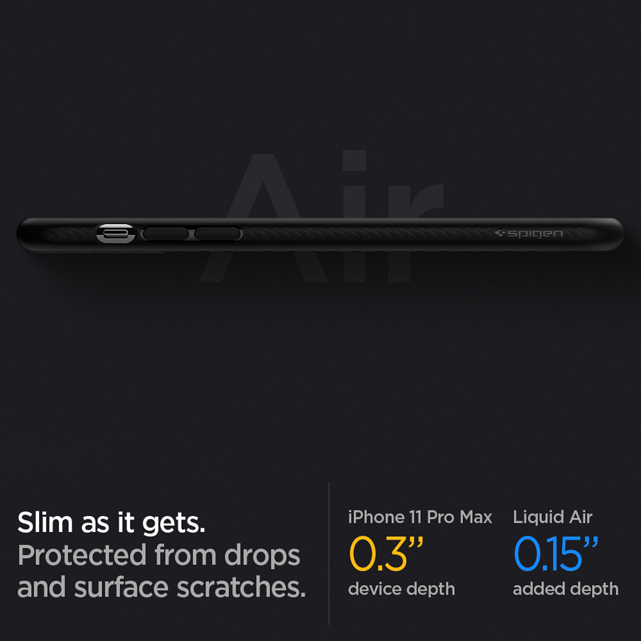 Case iPhone 11 Series Spigen Liquid Air merupakan full TPU Casing (Softcase) premium yang fleksibel dan tahan lama. Spigen Liquid Air dibekali dengan Air Cushion Technology dan pola geometric pada bagian belakang yang mewah.