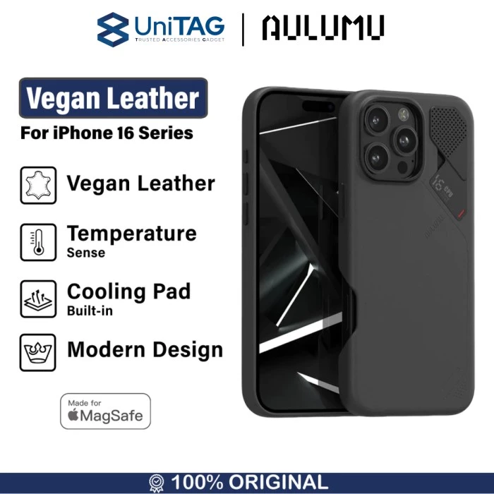 1x Aulumu Vegan Leather With Cooling Pad System Case for iPhone 16 Pro Max Plus