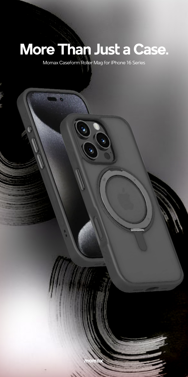 Case iPhone 16 Series Momax Roller MagSafe Hybrid Cover Casing dengan magsafe plate dan ring holder yang dapat diputar 360 derajat bikin kamu entertain anywhere, anytime !