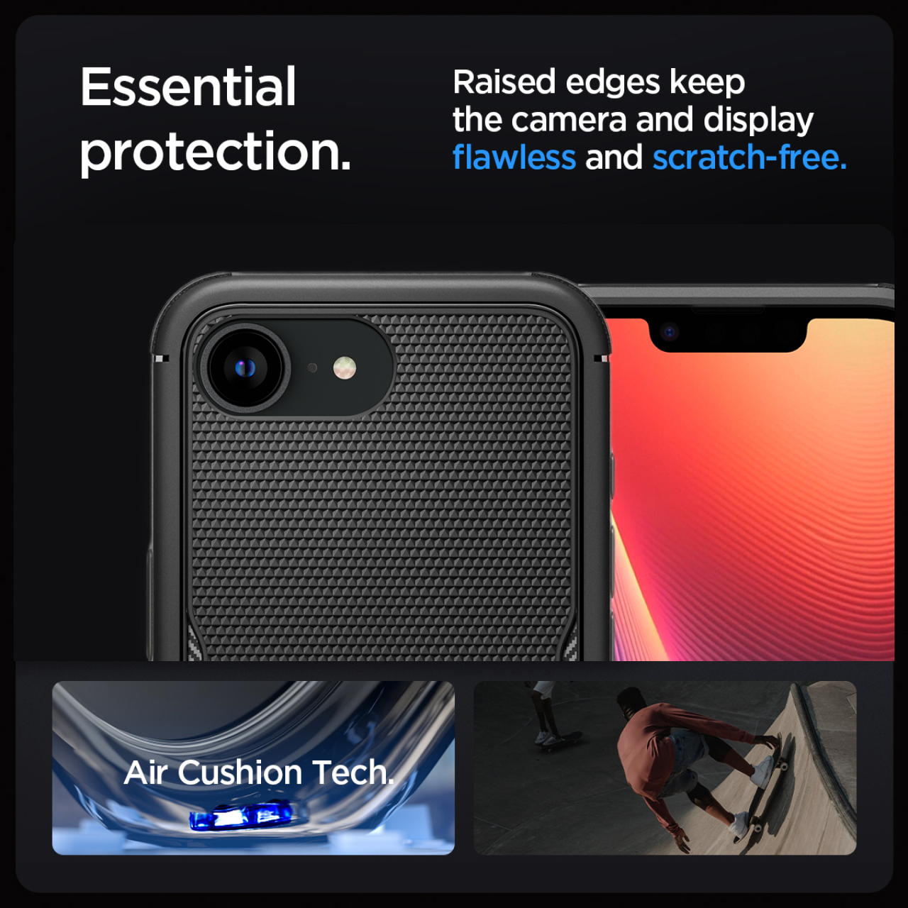 Teknologi bumper Air Cushion khas dari Spigen yang berfungsi untuk melindungi dari benturan.