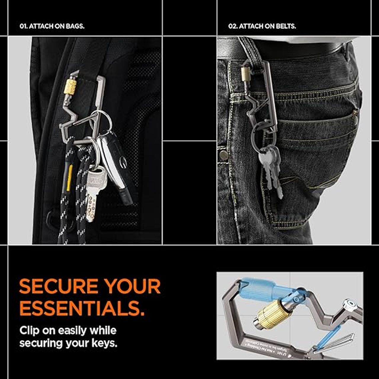 Desain twist-to-lock menjaga barang tetap terkunci saat dikaitkan ke belt loop atau ransel