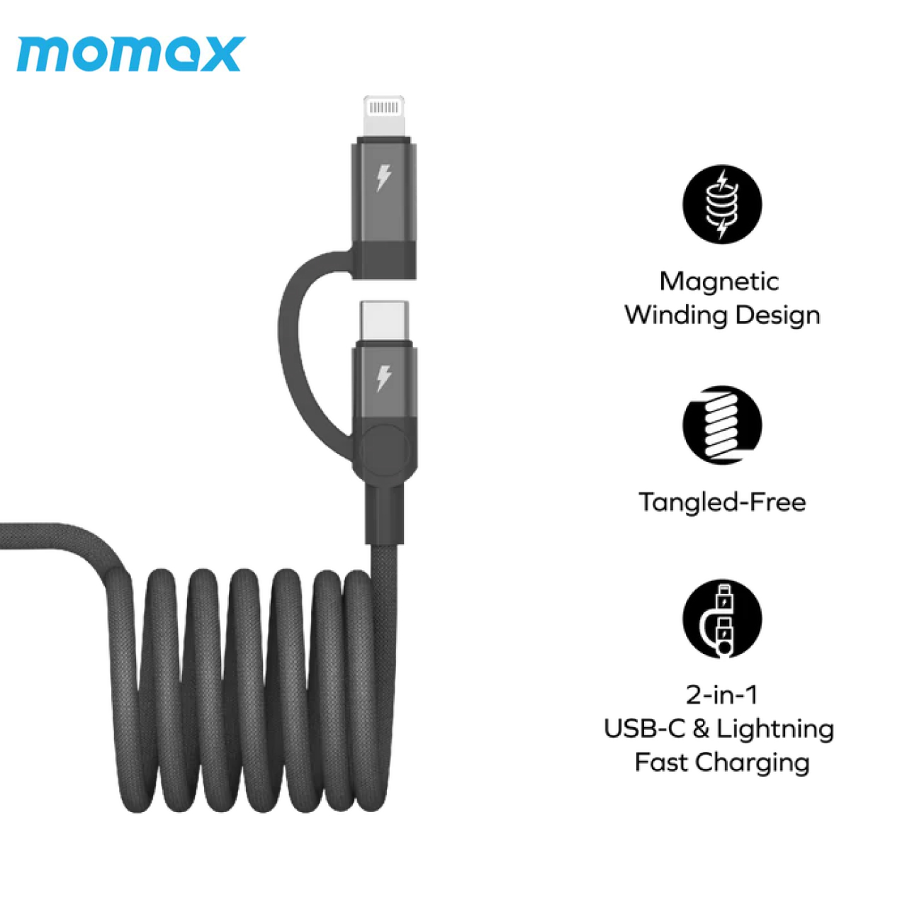 1x Dual Kabel Data USB Type C & Lightning MFI Momax Mag.Link 60W 3A