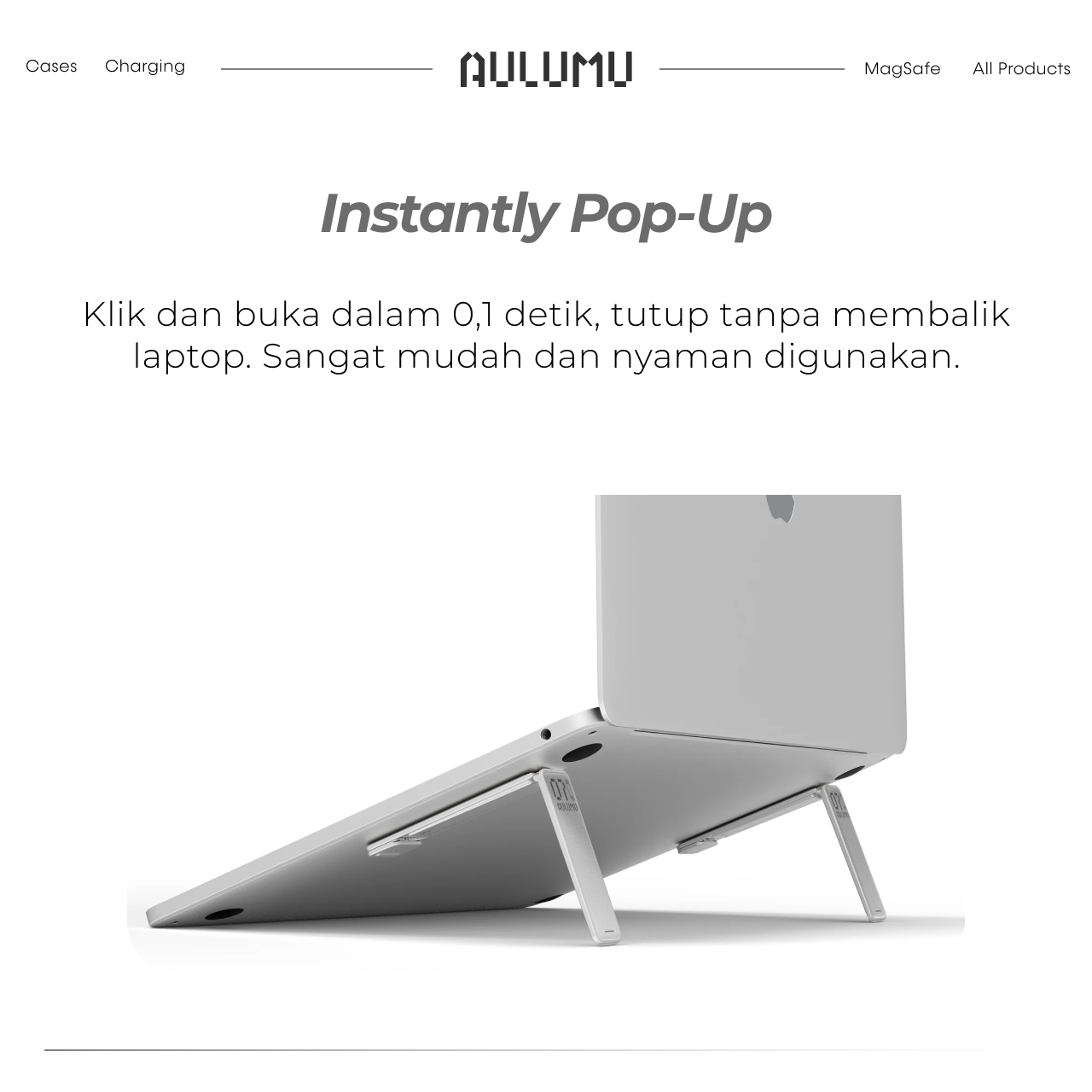 Laptop Macbook Kickstand Aulumu Pop Up Memiliki desain ergonomis, tidak ada lagi rasa sakit dari pergelangan tangan, bahu, leher saat mengetik dan menonton terus-menerus, karena dudukan ini memiliki ketinggian ideal setinggi mata untuk postur tubuh yang optimal.