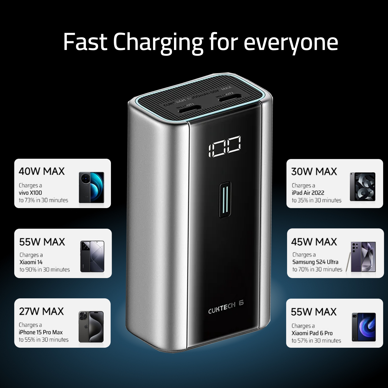 Powerbank Cucktech Mini Powerbank 55W 6000mAh dengan desain mini nan elegan yang kompatibel dengan berbagai protokol fast charging bikin anti was was dijalan, langsung isi langsung fast charging !