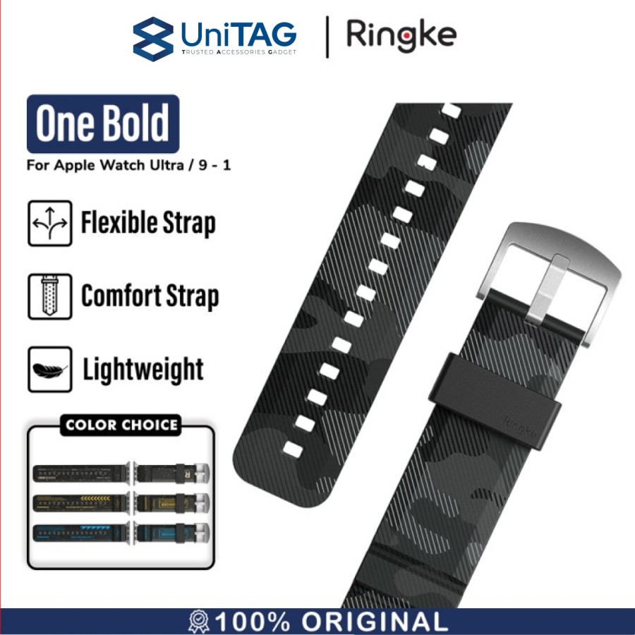 Strap Apple Watch Ultra / Ultra 2 (49mm) 9/8/7 (45mm/41mm) SE/6/5/4 (44mm/40mm) 3/2/1 (42mm/38mm Ringke Rubber One Bold Slicone Band merupakan tali jam yang terbuat dari bahan TPU softcase fleksibel.