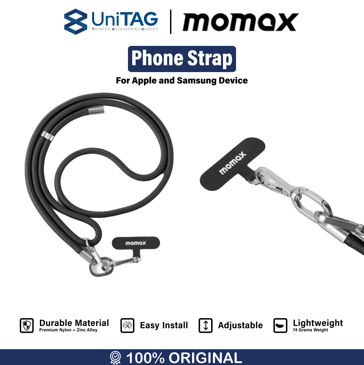 Universal Lanyard MOMAX lanyard body strap dengan bahan nlyon polyster premium yang bisa digantungkan ke bermacam device bikin  gampang bawanya, aman terus devicenya !