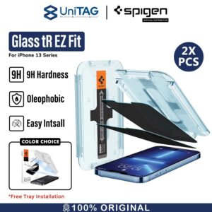 Tempered Glass iPhone 14 / 13 Series Spigen Glas tR Ez Fit Menawarkan pemasangan yang mudah karena terdapat alat bantu pasang.