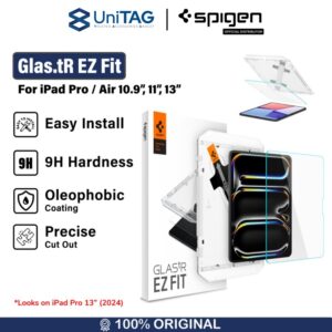Tempered Glass iPhone 15 Series Spigen Glas tR Ez Fit Full Cover Menawarkan pemasangan yang mudah karena terdapat alat bantu pasang.