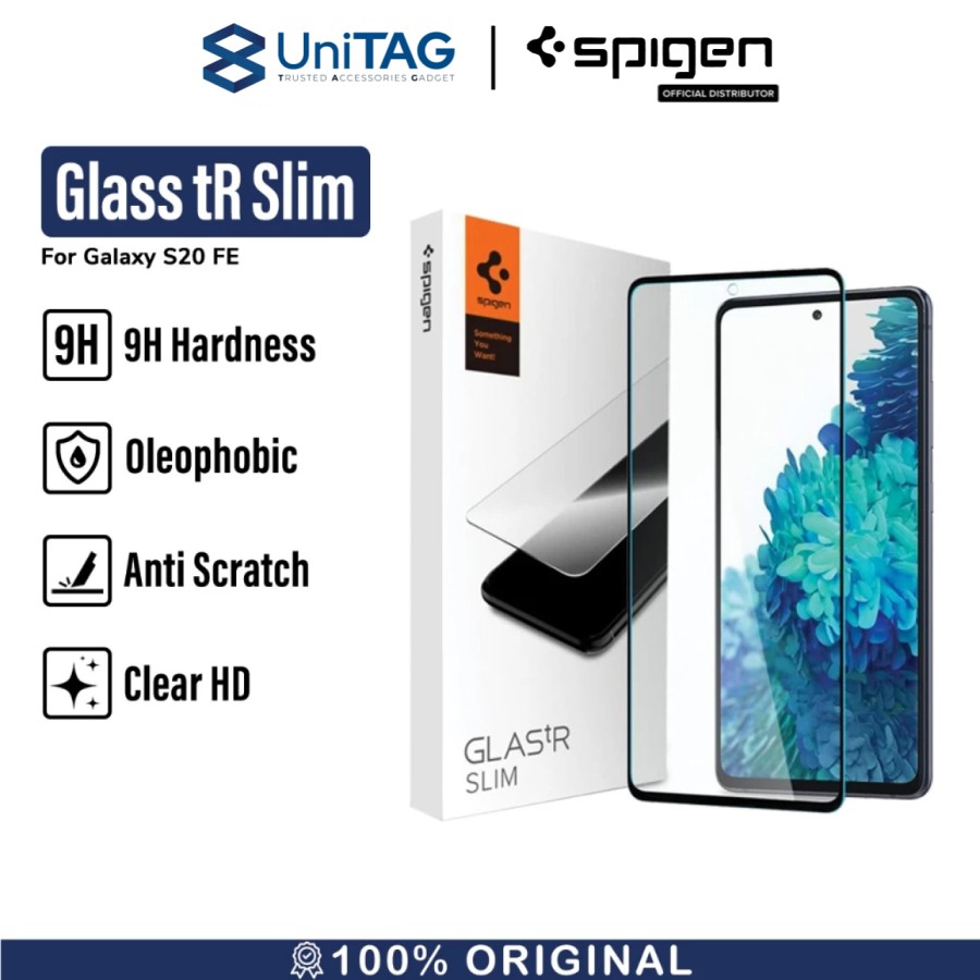 Tempered Glass Samsung Galaxy S20 FE Spigen Glas.tR Slim Merupakan pelindung layar yang terbuat dari kaca dengan kekerasan 9H Hardness serta memiliki lapisan Oleophobic yang akan melindungi layar.