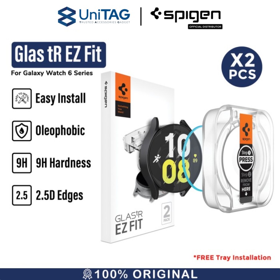 Tempered Glass Samsung Galaxy Watch 6 44/40mm Spigen Glas.tR Ez Fit merupakan pelindung layar yang terbuat dari kaca dengan kekerasan 9H Hardness. Spigen Glas.tR Ez Fit tray yang akan memudahkanmu melakukan instalasi.
