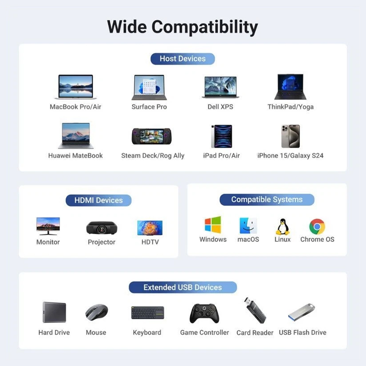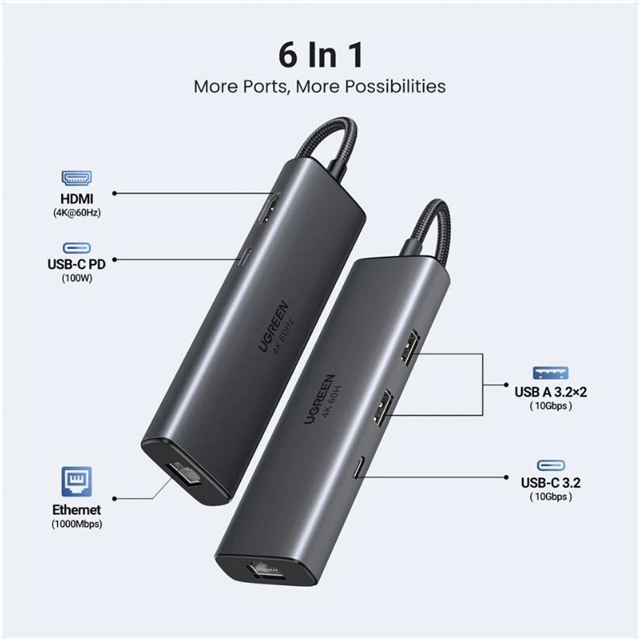 UGREEN USB HUB 6 in 1 Type C to HDMI 4K LAN RJ45 USB A 3.0 USB C 3.2 With Power Delivery 100W