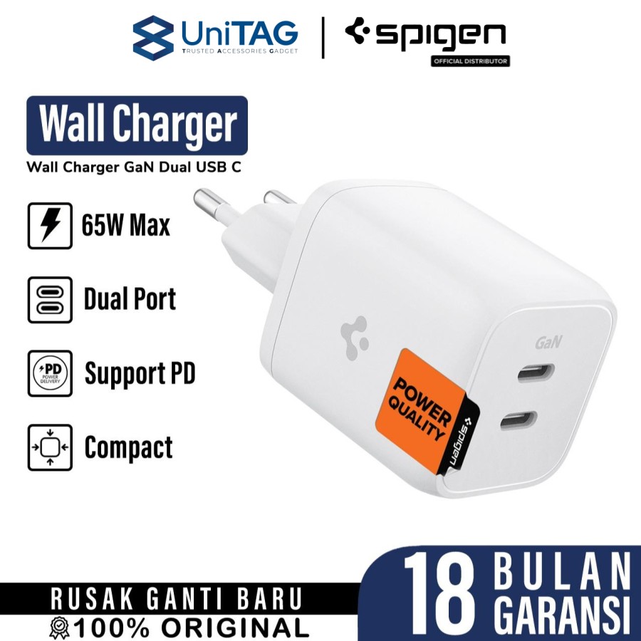 1x Wall Charger Kepala Adaptor Spigen ArcStation GaN Dual USB C 65W ACH03720