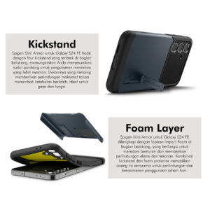• Case Samsung Galaxy S24 FE Spigen Slim Armor Matte Kick Stand Antishock Shockproof Hybrid Casing